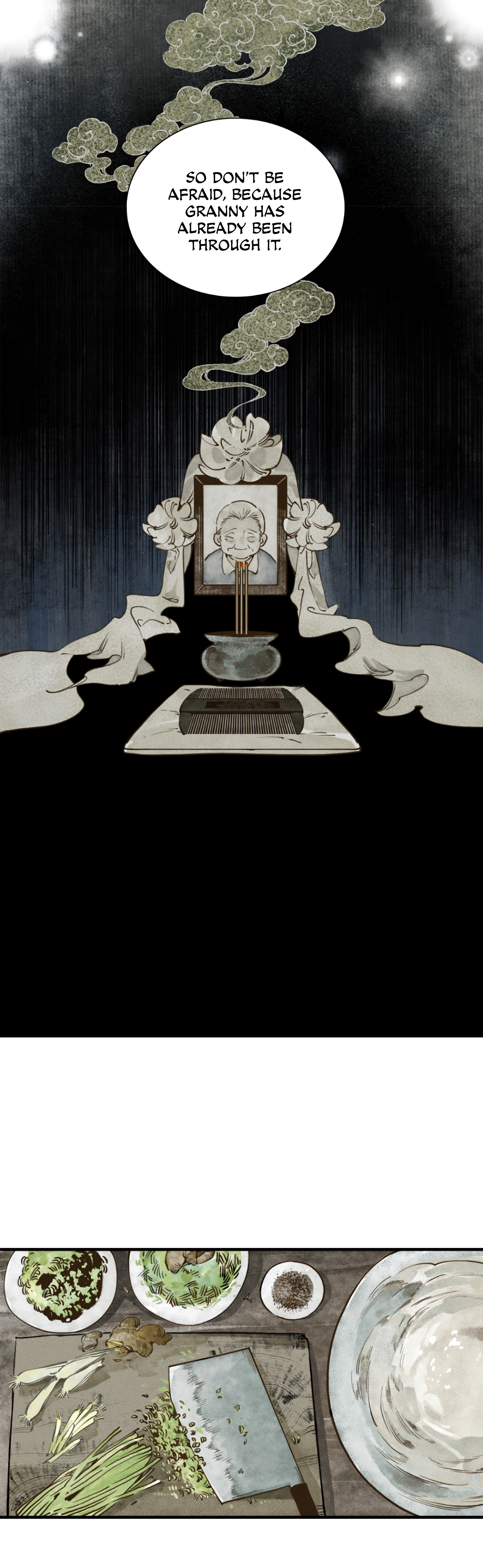 Coffin/s, Death, Full Color, Granddaughter/s, Grandmother/s, Long Strip, Oneshot, Spirit/s